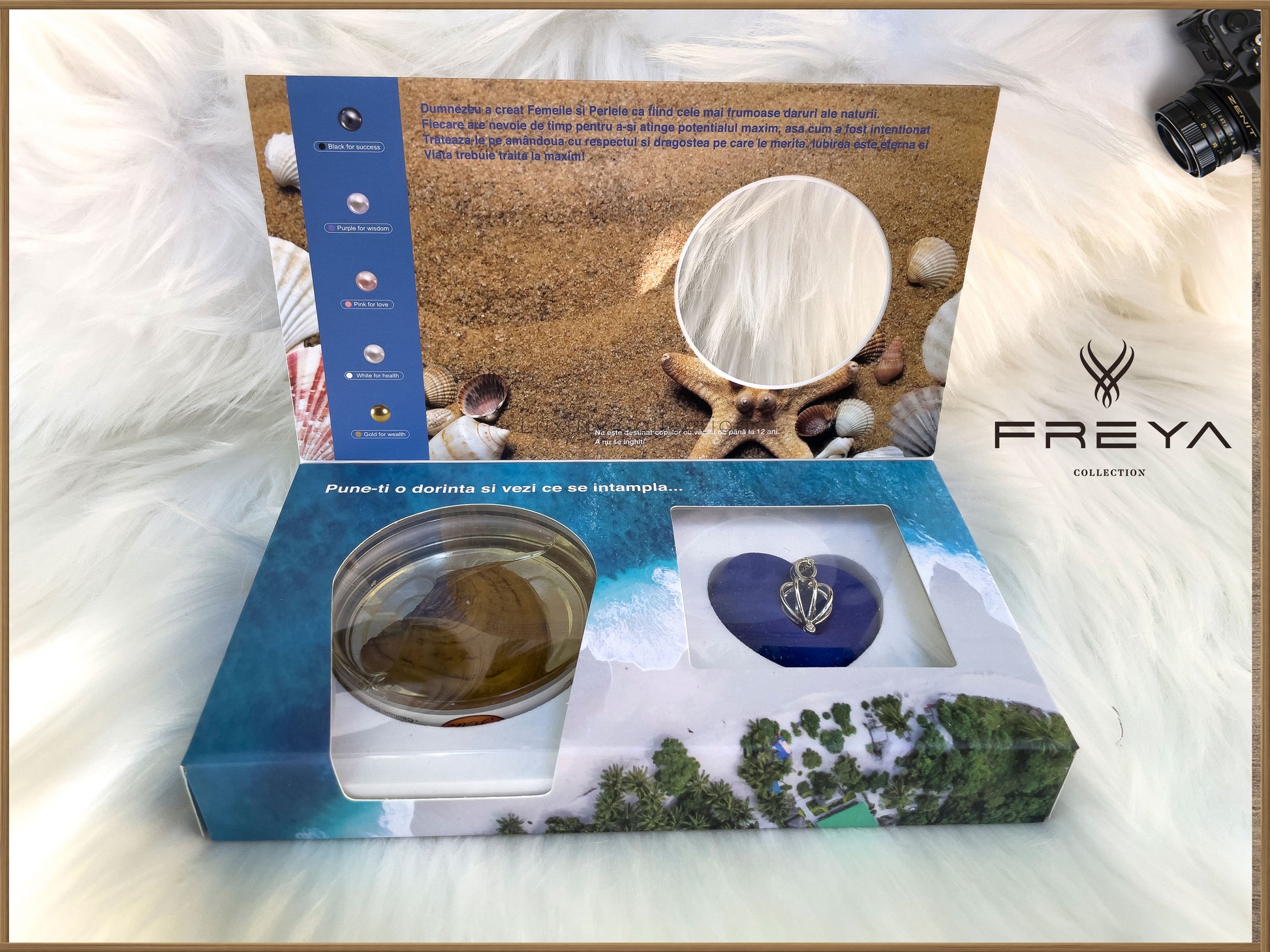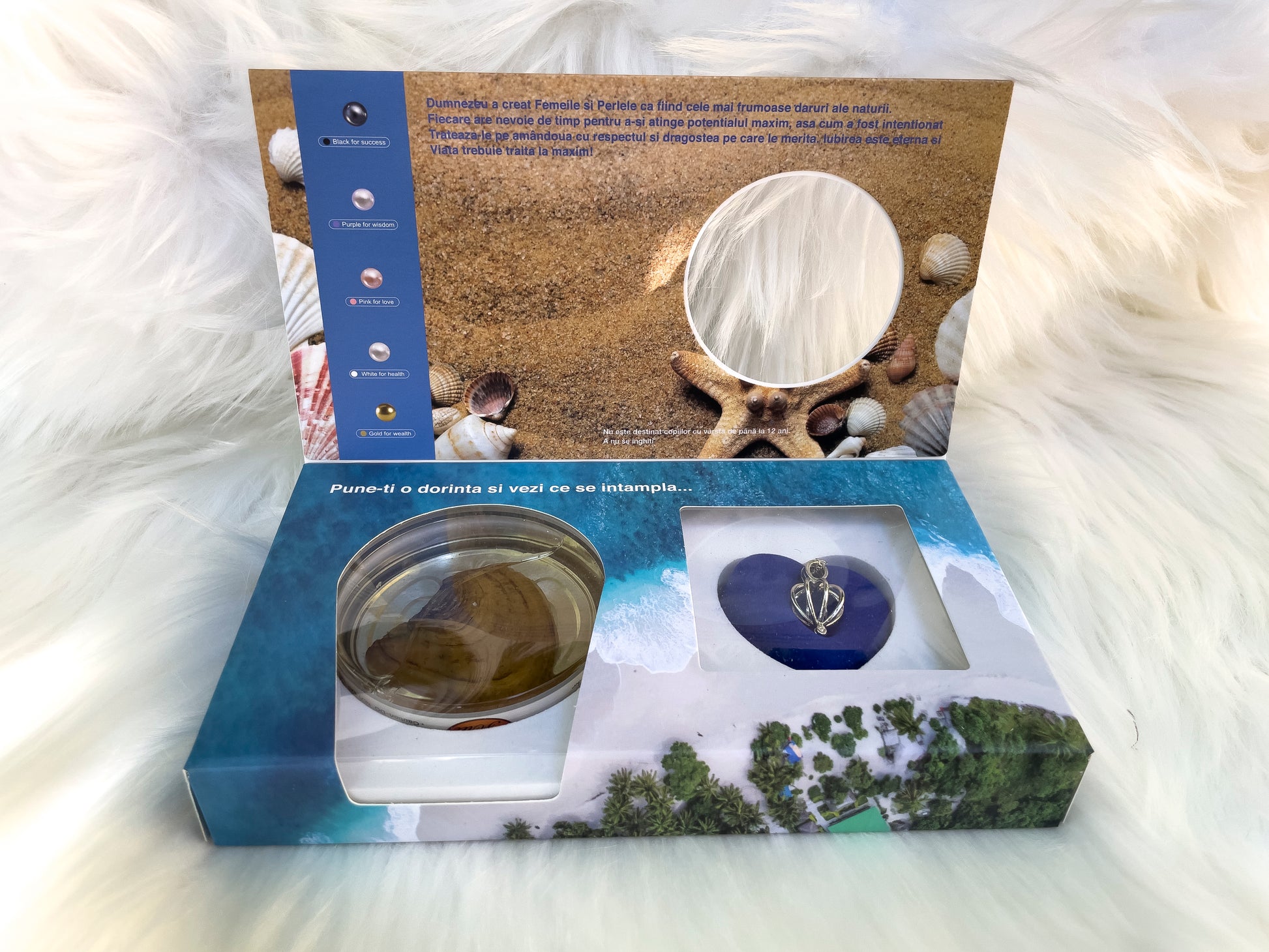 Această perlă naturală, ascunsă cu grijă într-o scoică reală și păstrată într-o cutie cu apă de mare, își așteaptă aleasa...pe tine.